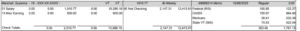 Paystub of Fulltime position - Program Coordinator ($1,910.77)