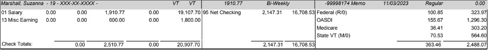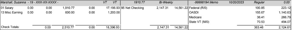 Paystub of Fulltime position - Program Coordinator ($1,910.77)