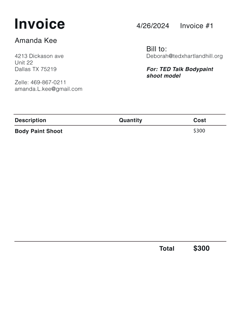 | Receipts (see below) | Reimbursement invoice from model for branded hero image 2024 ($300.00) |